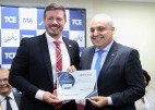 O Secretário de Estado de Transparência e Controle, Raul Cancian Mochel, representando o Governador Carlos Brandão, foi o responsável por receber a honraria das mãos do presidente do TCE, Connselheiro Marcelo Tavares.