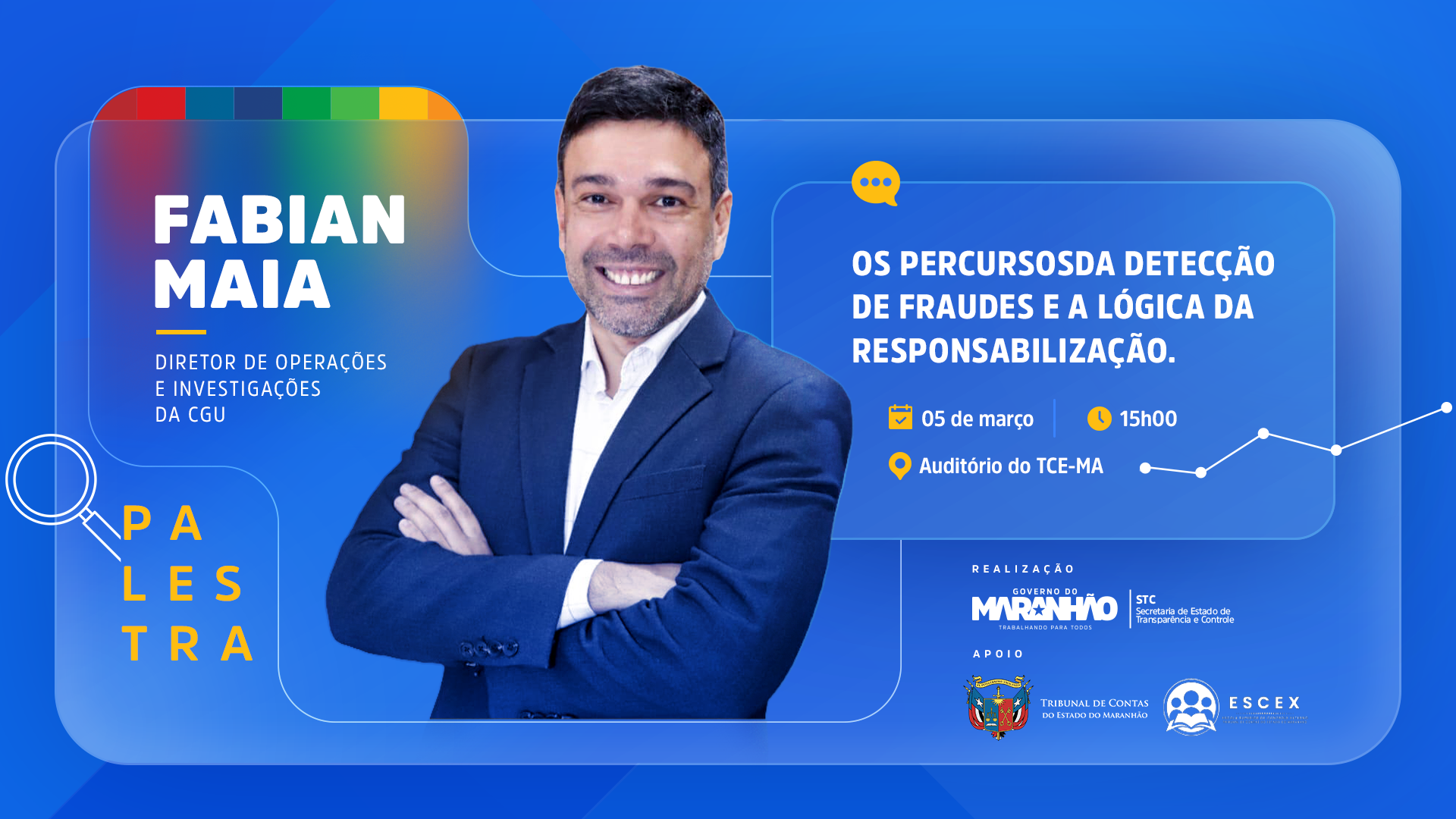 Como parte da abertura do calendário de capacitações de 2026, a Secretaria de Estado de Transparência e Controle (STC), com o apoio do Tribunal de Contas do Estado do Maranhão (TCE/MA) e da Escola Superior de Controle Externo (ESCEX), realizará, no dia 05 de março, às 15h, no auditório do TCE/MA, a palestra “Os Percursos da Detecção de Fraudes e a Lógica da Responsabilização”.